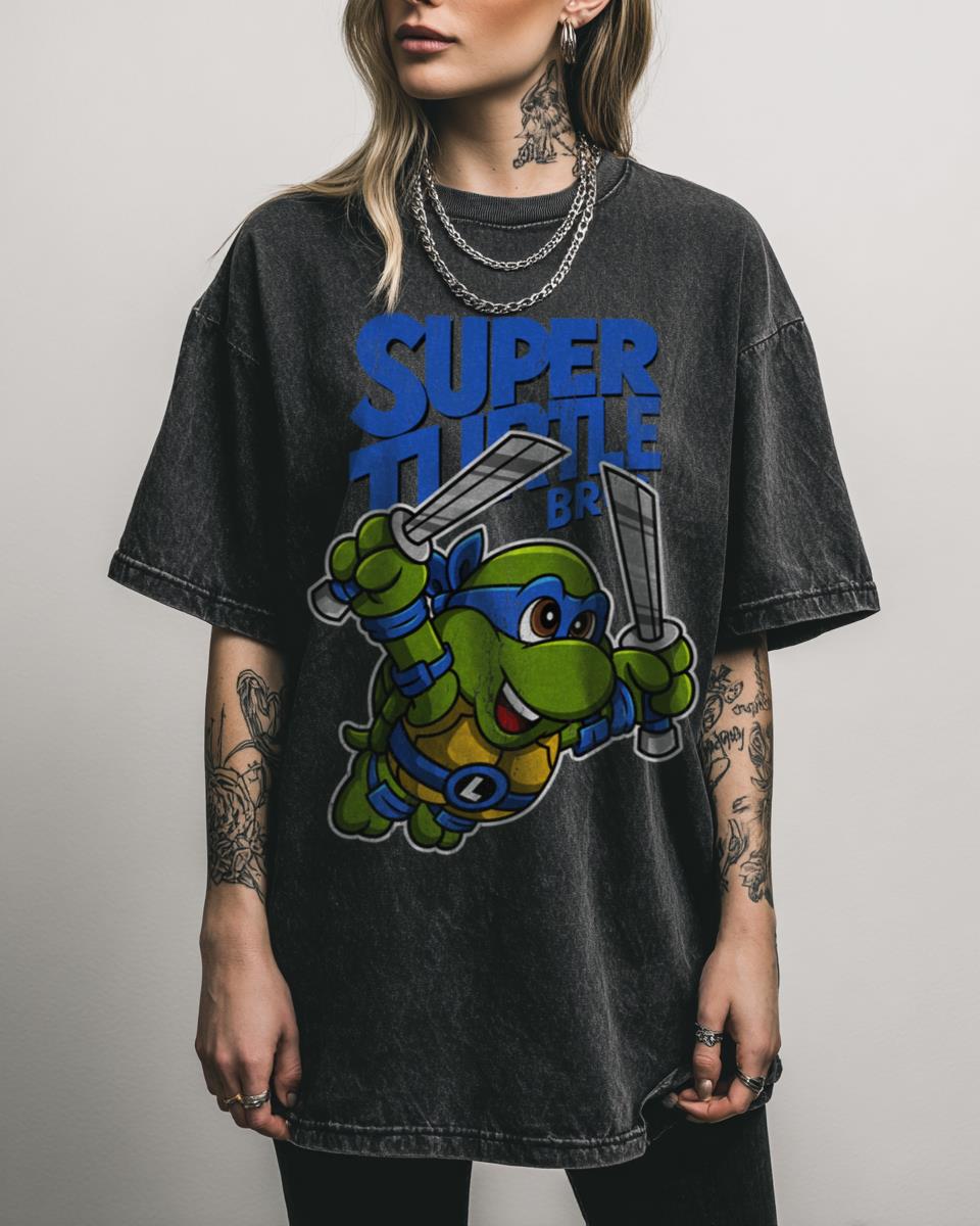 Cowabunga, dude! Ready to rock some retro 80s ninja action? Step back into the sewers with this awesome ‘Super Turtle Bros – Leo’ T-shirt, celebrating Leonardo from the iconic Teenage Mutant Ninja Turtles! This design perfectly captures the nostalgic charm of the 80s cartoon and classic arcade games, bringing a cool, mutant ninja vibe to…