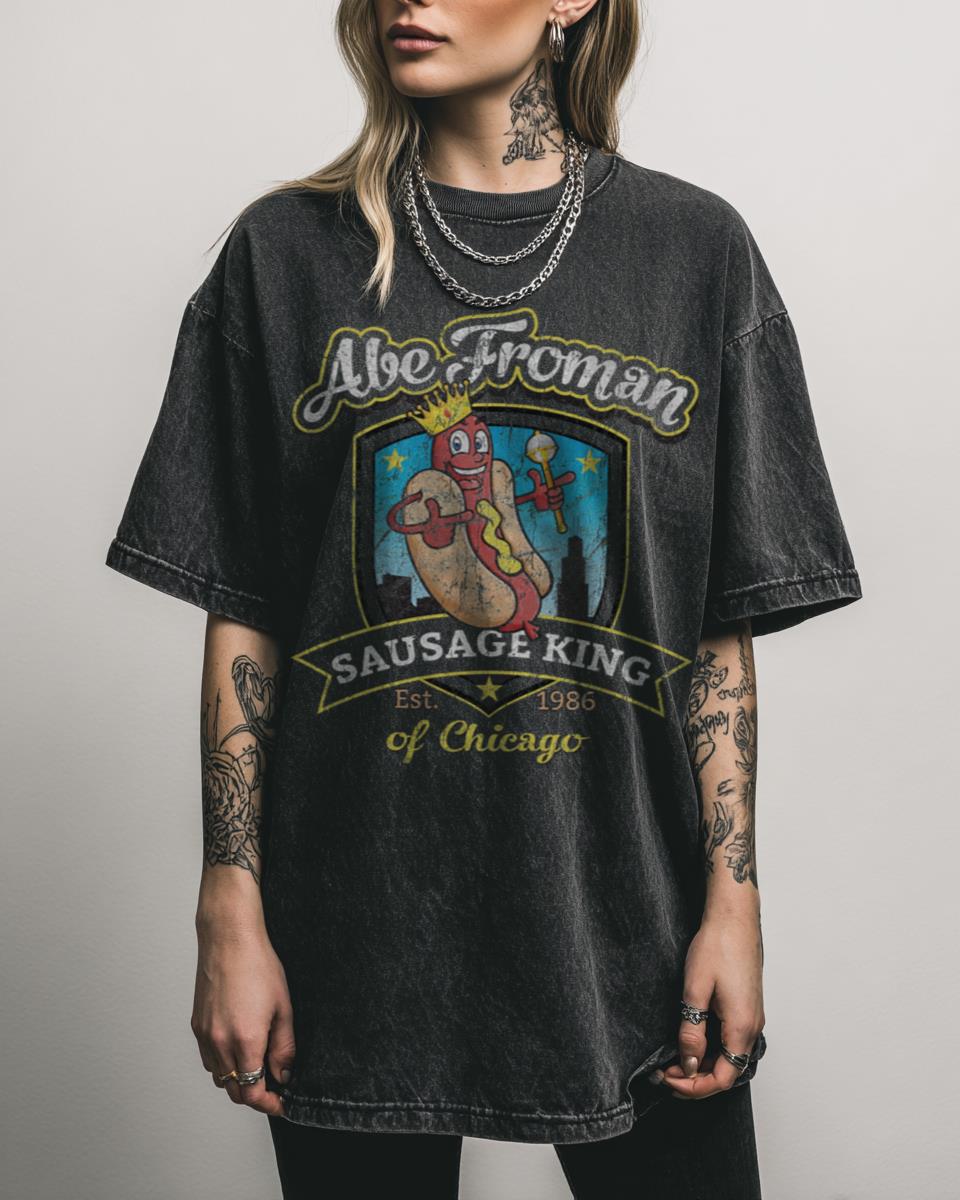 Do you remember the legendary ‘Sausage King of Chicago’ from a classic 80s film? Channel your inner Ferris Bueller with this ‘Abe Froman, Sausage King of Chicago’ distressed design. A perfect tribute to the iconic 1986 movie, this vintage-style graphic captures the humor and carefree spirit of a timeless comedy. It’s a subtle nod that…