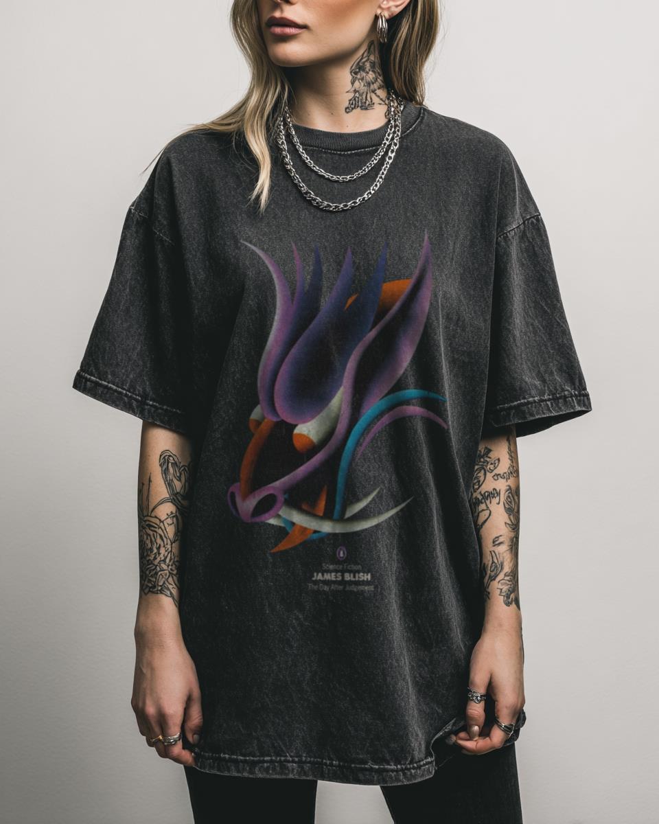 Explore the Unknown with This James Blish Vintage Sci-Fi Tee! Delve into the depths of classic science fiction with this **James Blish “The Day After Judgement” T-shirt**, a stylish tribute to vintage sci-fi literature. Featuring an evocative graphic on a unique black acidwash tee, it’s perfect for fans of groundbreaking speculative fiction and retro book…