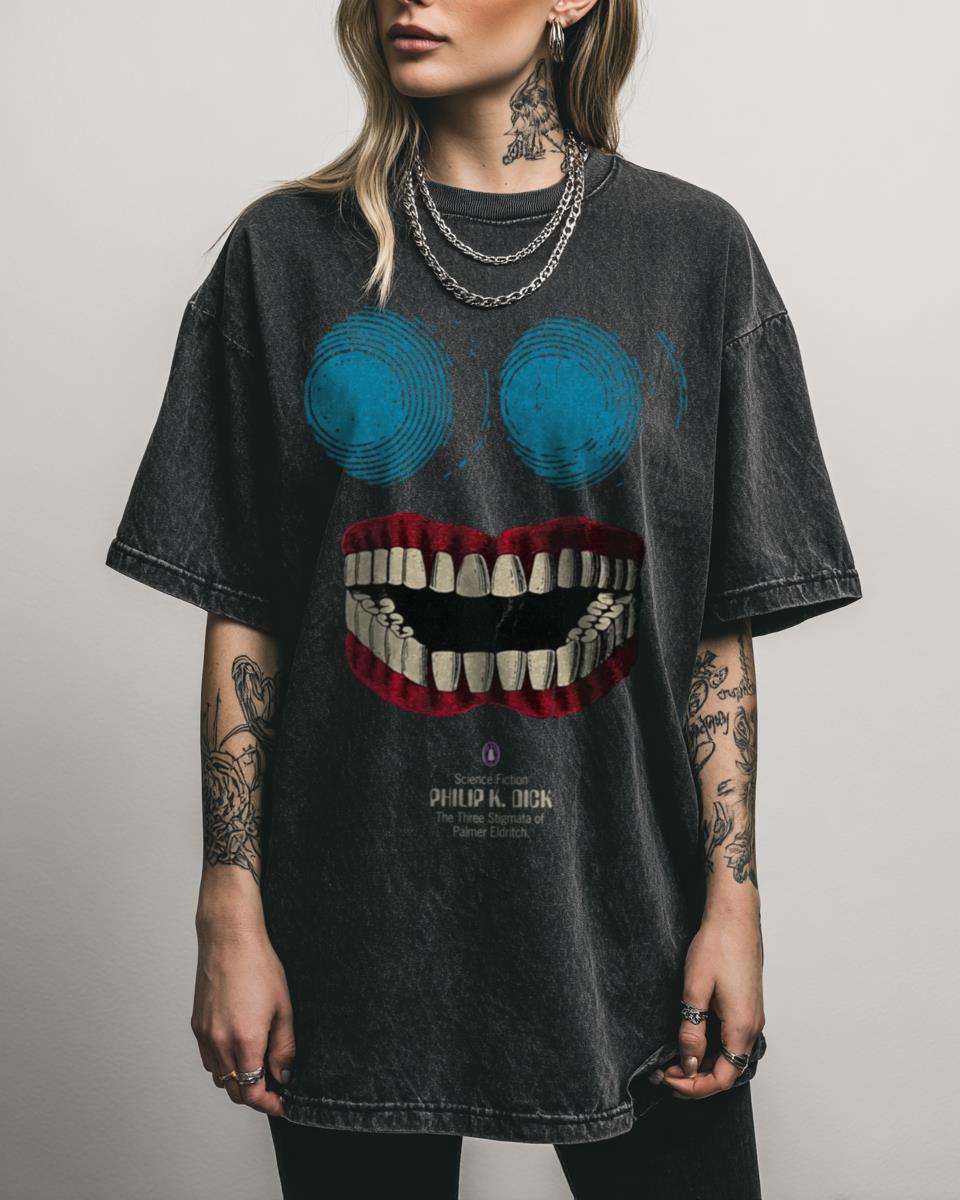 Dive into the mind-bending worlds of Philip K. Dick! This “The Three Stigmata of Palmer Eldritch” design is a classic tribute to one of the most influential science fiction authors. Perfect for fans of vintage sci-fi literature and dystopian narratives, it’s a sophisticated way to display your appreciation for groundbreaking speculative fiction. Why You’ll Love…