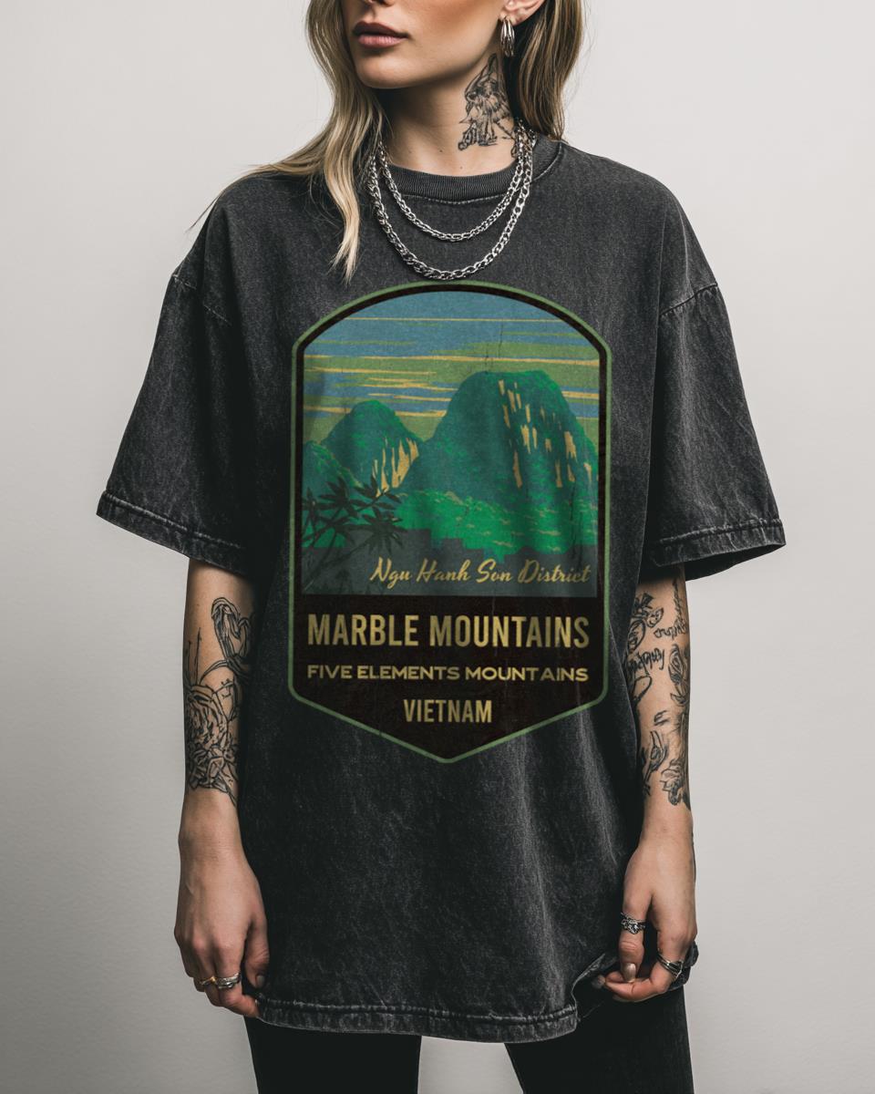 Dreaming of the majestic landscapes of Vietnam? Capture the essence of Southeast Asian beauty with this “Marble Mountains Vietnam” T-shirt, featuring a vintage-style emblem of the iconic Five Elements Mountains. This design is a perfect souvenir or gift for travelers and anyone who appreciates the natural wonders and cultural heritage of Vietnam, specifically the Hanh…