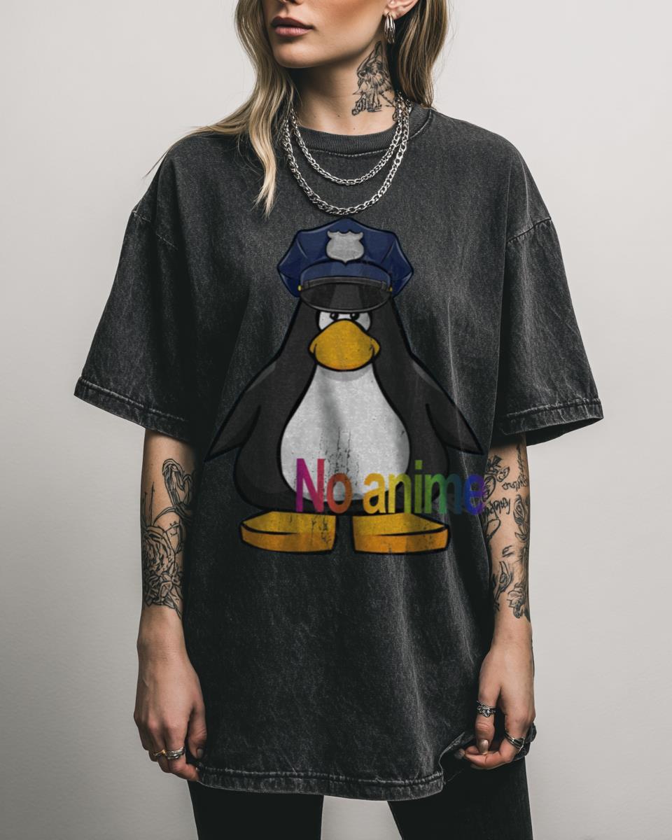 Are you a fan of internet memes and classic online games? Enforce the rules of the internet (or at least Club Penguin Island) with this hilarious ‘NO Anime Allowed Club Penguin Cop’ design! This popular meme-inspired graphic features the iconic penguin cop, making a bold statement. Perfect for meme enthusiasts, former Club Penguin players, and…