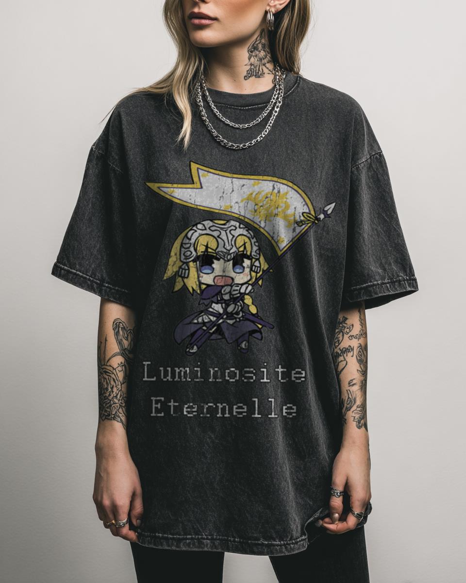 Embrace Your Favorite Ruler with This Chibi Jeanne d’Arc Fate Series Tee! Show your devotion to the Holy Maiden with this adorable Chibi Jeanne d’Arc Fate Series Tee. Featuring a charming banner graphic of Jeanne Darc in her popular chibi style, this shirt is a must-have for fans of “Fate/Grand Order,” “Fate/Apocrypha,” and the entire…