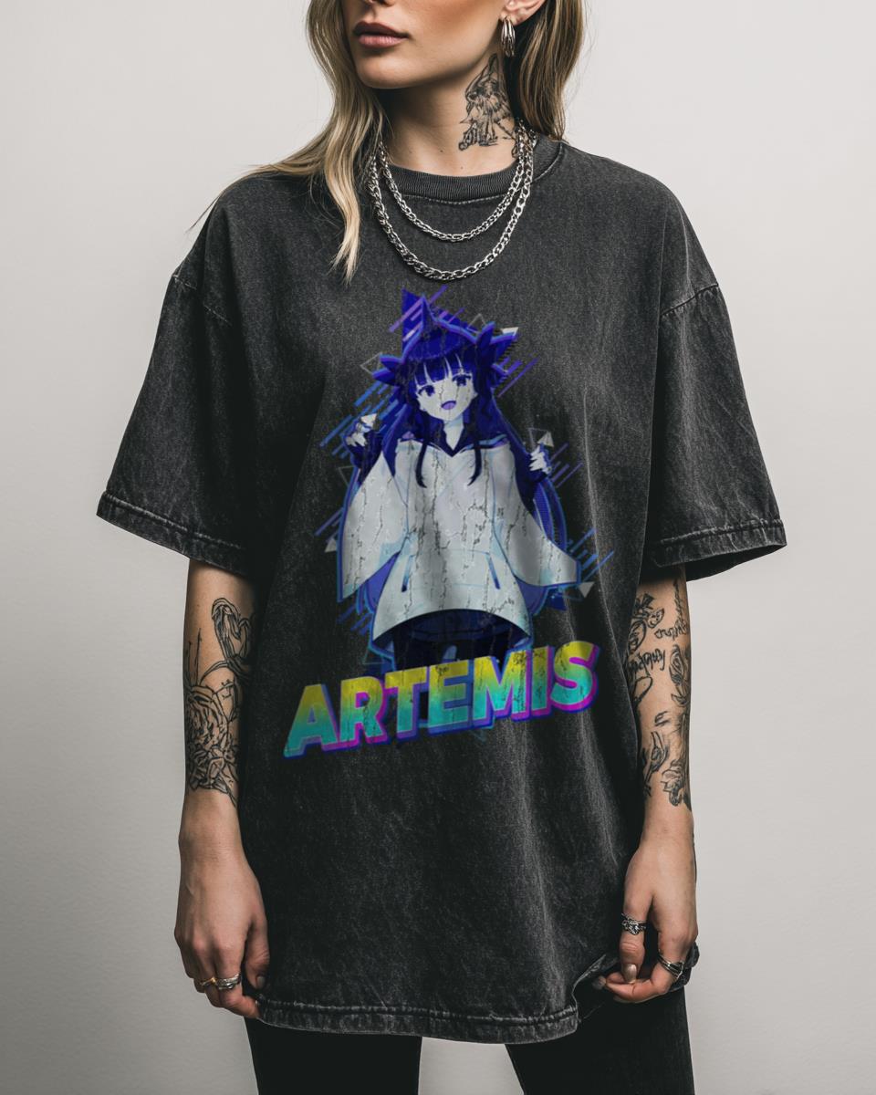 Are you a dedicated fan of Hololive Vtubers and Artemis of the Blue? Show your support for your favorite virtual streamer with this adorable ‘Artemis | Hololive Vtuber’ graphic tee! Featuring Artemis of the Blue as a cute peeking shark girl with blushing cheeks, this design is perfect for fans of Vtubers and anime aesthetics….