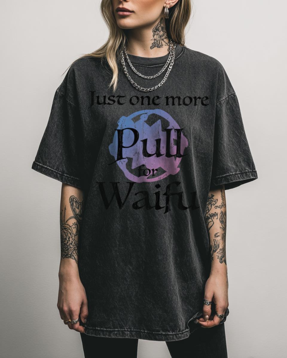 Are you a dedicated gacha gamer dreaming of that next big pull? Dive into the thrilling world of anime gacha with this unique design. Featuring a stylized ‘Just one more pull for WAIFU’ phrase, it perfectly captures the excitement and anticipation of wishing for your favorite character in games like Genshin Impact. The light-themed artwork…