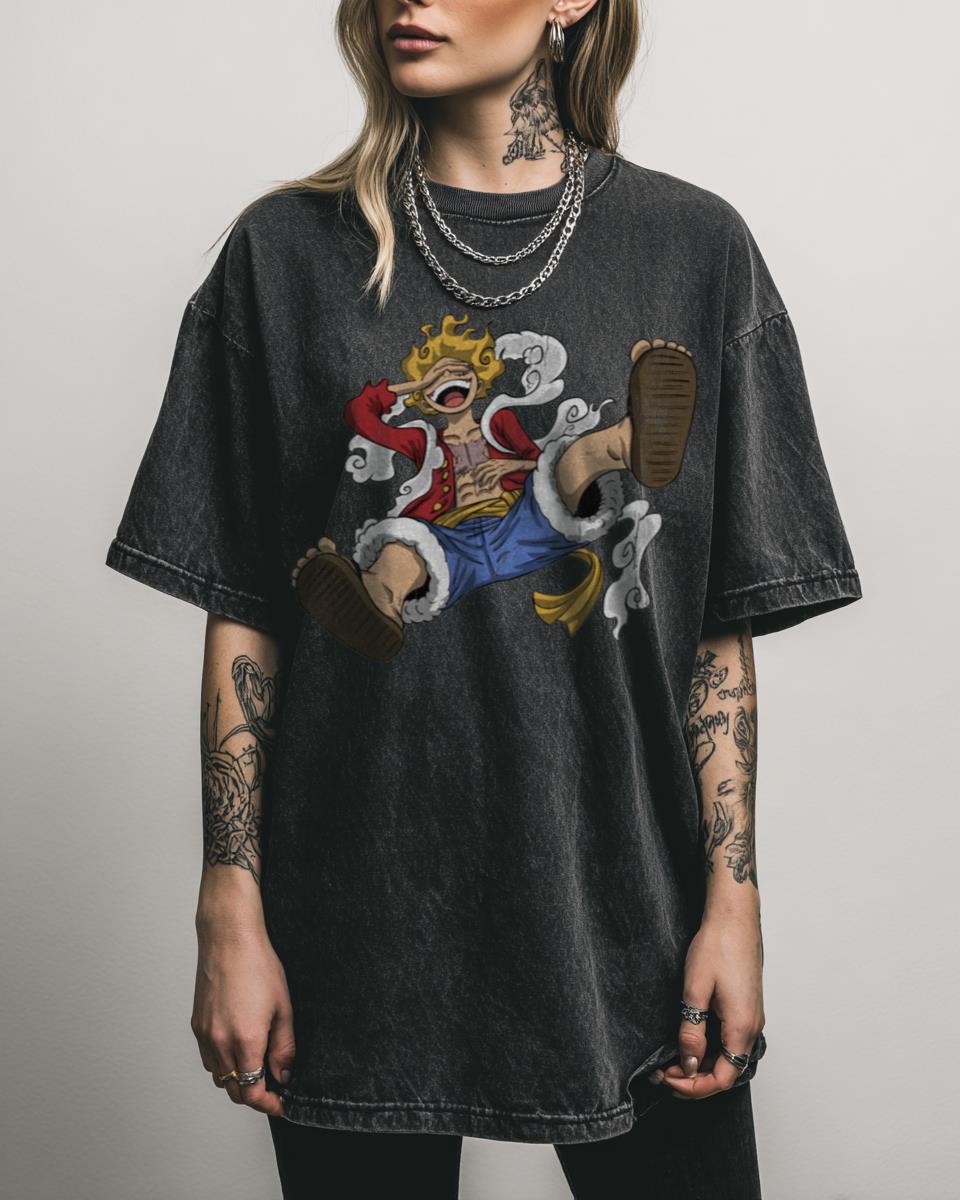 Unleash the Power with This Luffy Gear 5 One Piece T-Shirt! Witness the awe-inspiring transformation with this Luffy Gear 5 One Piece T-shirt, celebrating Monkey D. Luffy’s ultimate power-up. This fan-created graphic tee, featuring a striking black acidwash, is the perfect way for any dedicated anime fan to showcase their love for the Nika God….
