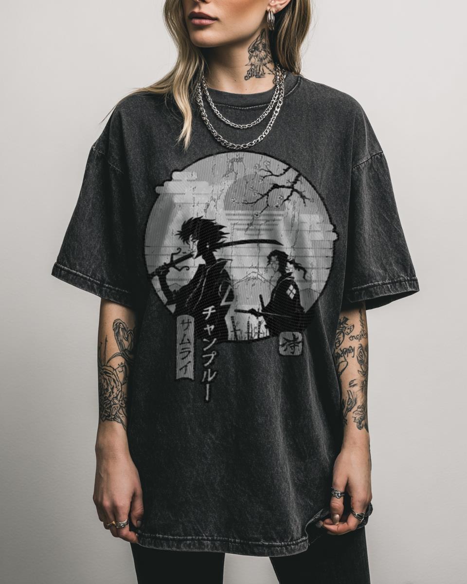 Ready to wander the Edo period with a hip-hop twist? Embark on an epic journey with this ‘SAMURAI CHAMPLOO!’ T-shirt, a fantastic design featuring the iconic trio Mugen, Jin, and Fuu. This graphic captures the unique blend of historical samurai action and modern hip-hop aesthetic, perfect for fans of the beloved anime and manga series….