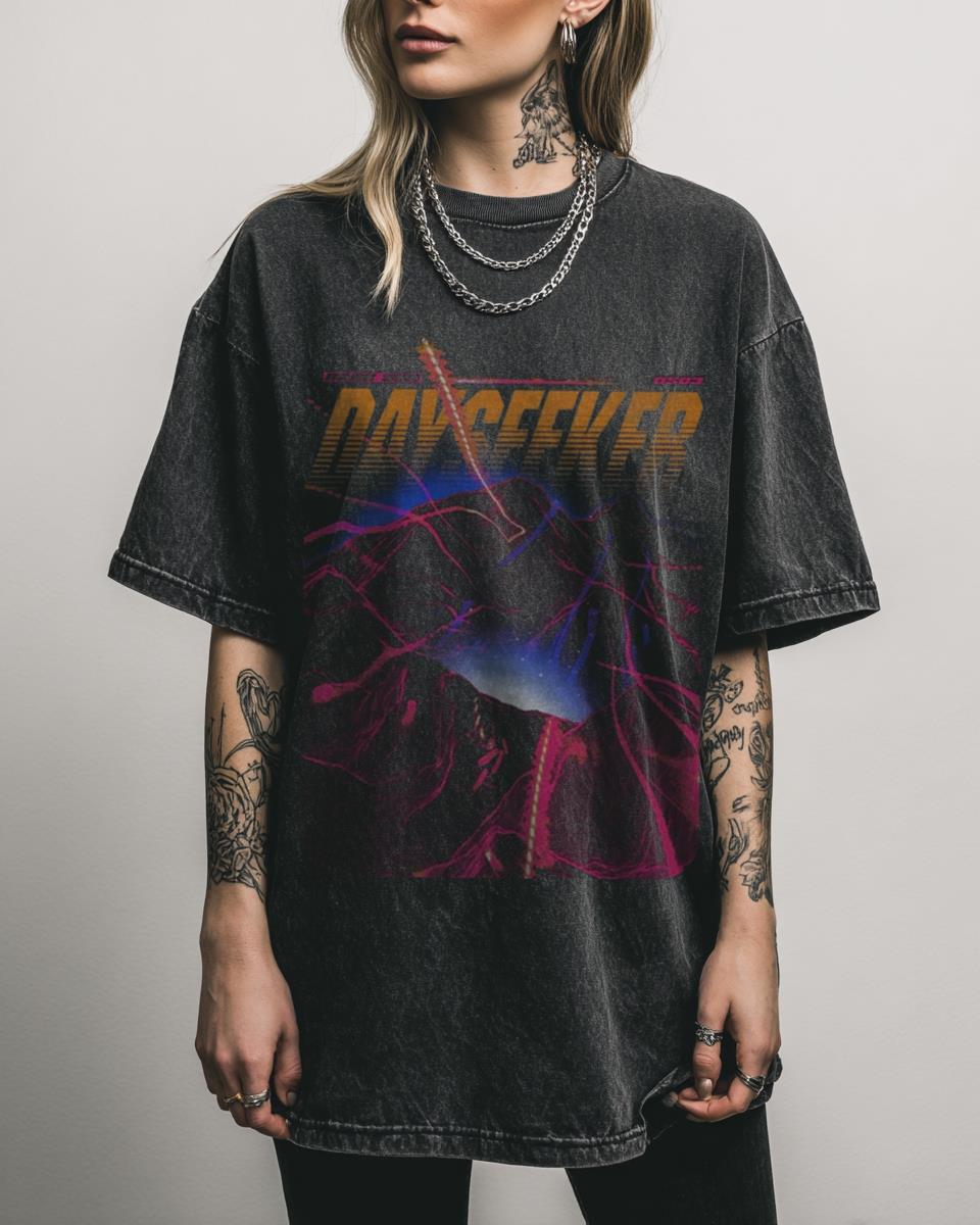 What Makes This Dayseeker Vaporwave T-Shirt a Must-Have? Embrace the nostalgic vibes with our Dayseeker Vaporwave T-Shirt, featuring a unique graphic inspired by the retro 80s and 90s aesthetic. This striking black acidwash tee perfectly captures the essence of synthwave and future bass culture, making it an essential piece for any fan of vintage-inspired fashion….