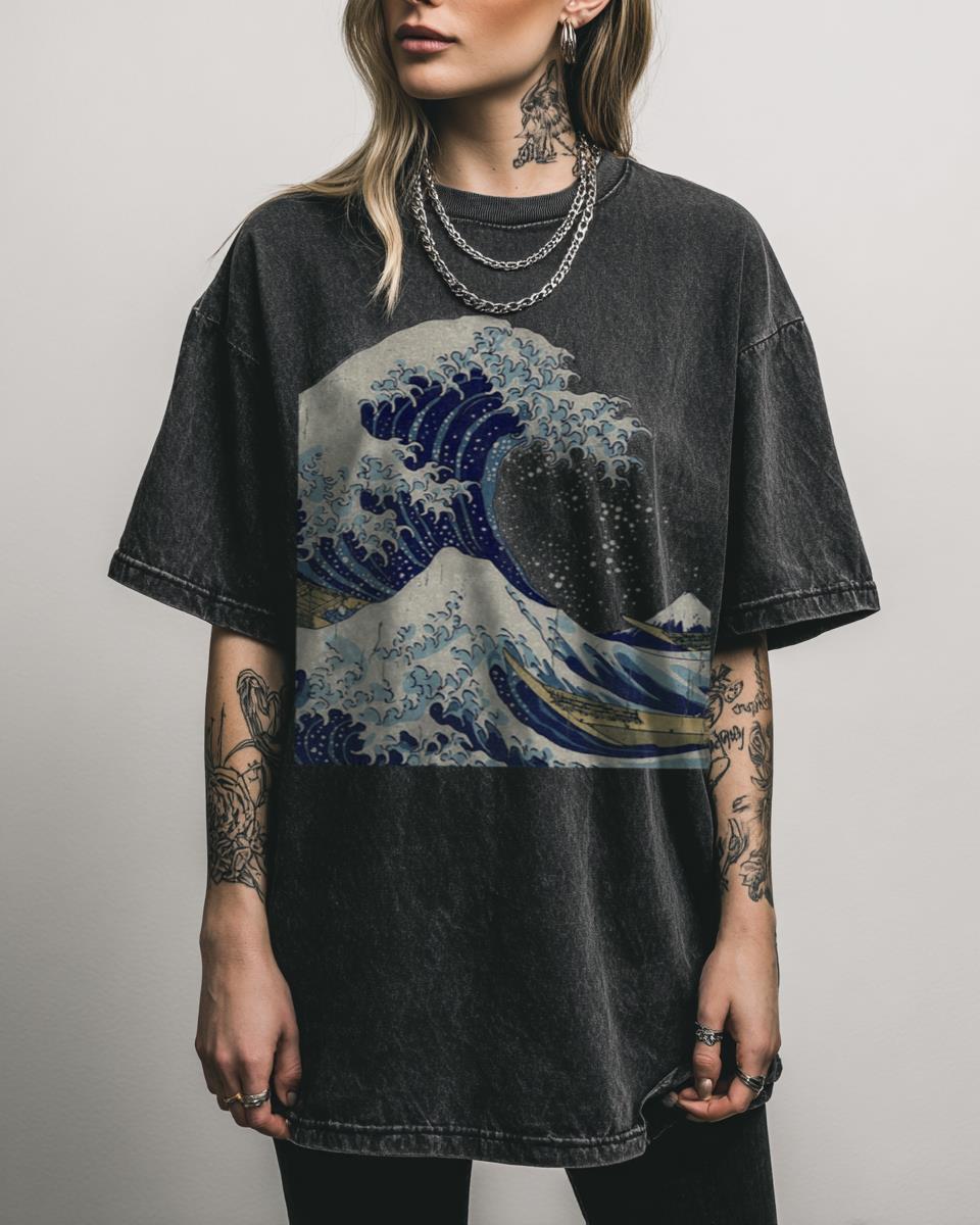 Immerse yourself in the timeless beauty of Japanese art history? Adorn yourself with ‘The Great Wave off Kanagawa by Hokusai’ tee, a masterpiece of ukiyo-e art. This iconic Japanese print, depicting a colossal wave threatening boats near Mount Fuji, is a must-have for art lovers and those who appreciate classic vintage aesthetics. Why You’ll Love…