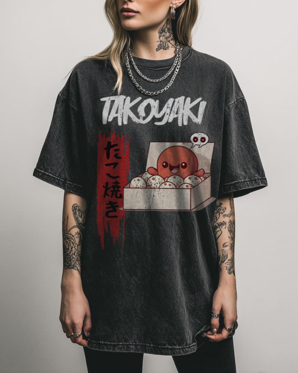 Craving a taste of delicious Japanese street food with a side of cuteness? Indulge in the adorable world of Takoyaki with this ‘Happy Octopus Takoyaki’ design! This kawaii graphic features a cheerful octopus enjoying its favorite snack, celebrating the beloved Japanese cuisine. It’s a perfect tee for anime fans, foodies, otaku, and anyone who loves…