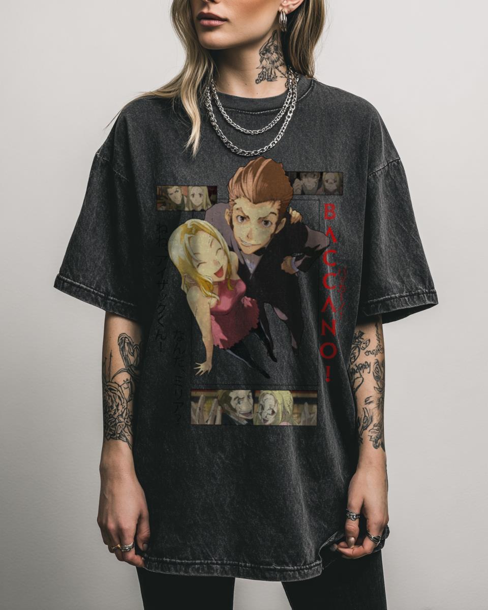 Are you captivated by the charming chaos of Isaac and Miria from Baccano!? Celebrate the unforgettable duo with this “Baccano! – Isaac and Miria” T-shirt! This design captures the essence of the beloved anime and manga series, featuring the iconic characters in a classic art style. It’s a perfect piece for otaku and weebs who…