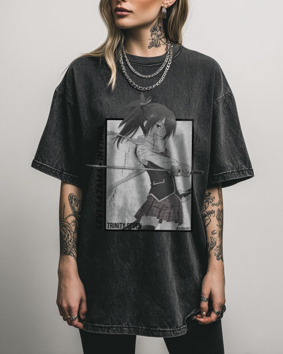 Are you a fan of the powerful and enigmatic Levi Kazama from Trinity Seven? Show your love for the popular anime series with this awesome graphic t-shirt featuring Levi Kazama, one of the seven powerful mages from Trinity Seven. This design captures her unique charm and strength, making it a fantastic addition to any anime…