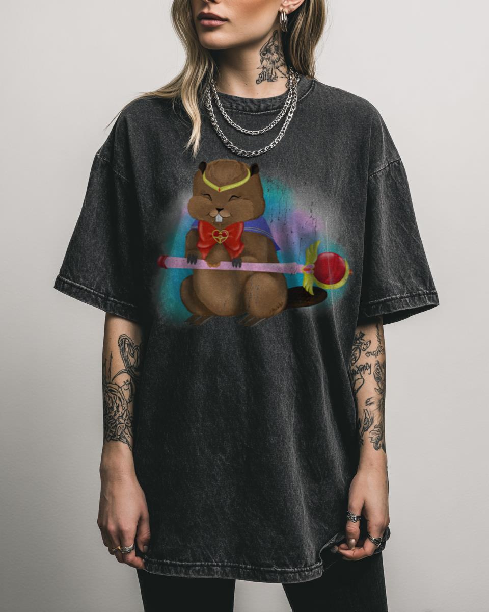 Looking for a whimsical and funny take on magical girl anime? This charming “‘Hódtündér’” tee features an adorable beaver with moon-themed accessories, reminiscent of Sailor Moon’s magical items. It’s a cute, funny, and unique design that blends animal charm with a playful nod to a beloved anime classic, perfect for those who love quirky art….