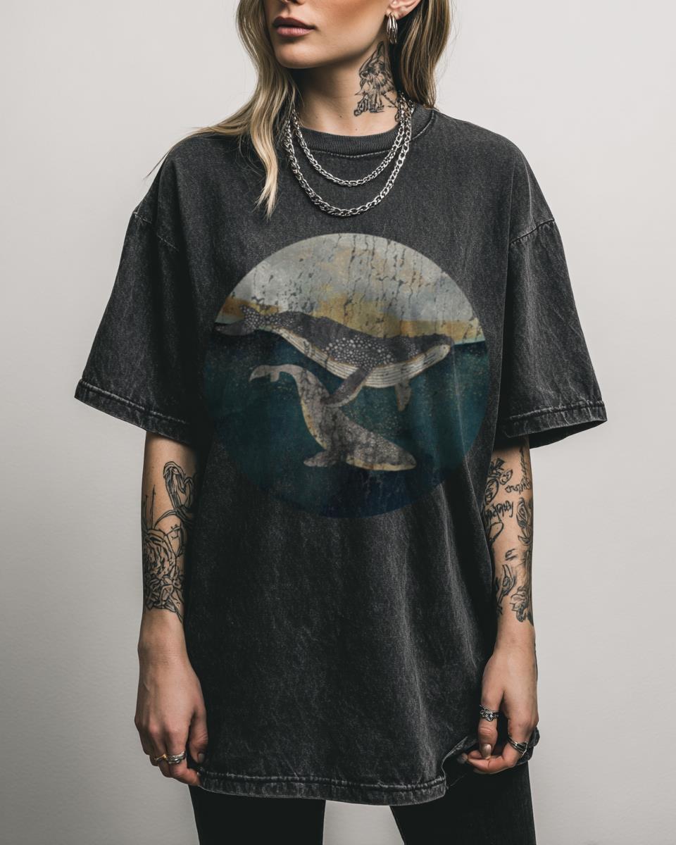 Celebrate Nature’s Bond with This Whale Mother & Child Tee! Connect with the serene beauty of the ocean with this heartfelt Bond Whale Mother & Child T-shirt. Featuring a captivating graphic of marine life on a cool black acidwash fabric, this tee is perfect for nature lovers and advocates for ocean conservation. Why This Ocean…