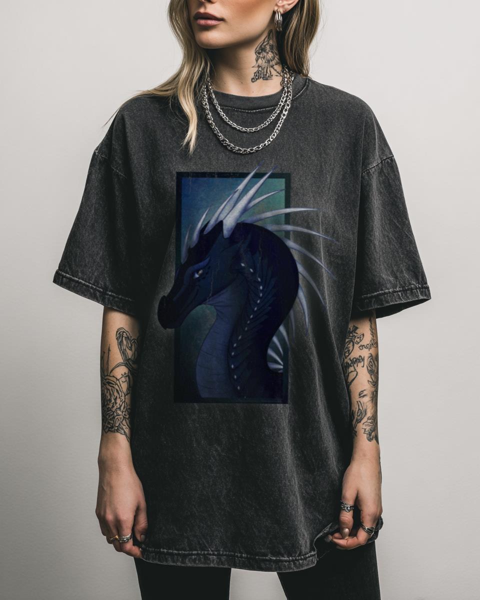 Soar into the world of Pyrrhia with this captivating dragon design! This “Whiteout – Wings of Fire” design beautifully portrays the enigmatic hybrid dragon, Whiteout, from the beloved book series. Combining the icy elegance of an Icewing with the mysterious power of a Nightwing, this tee is a must-have for any fan of the Wings…