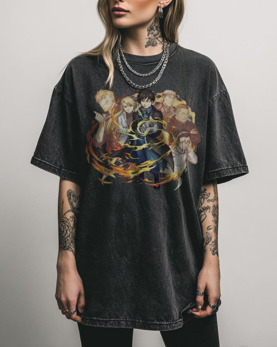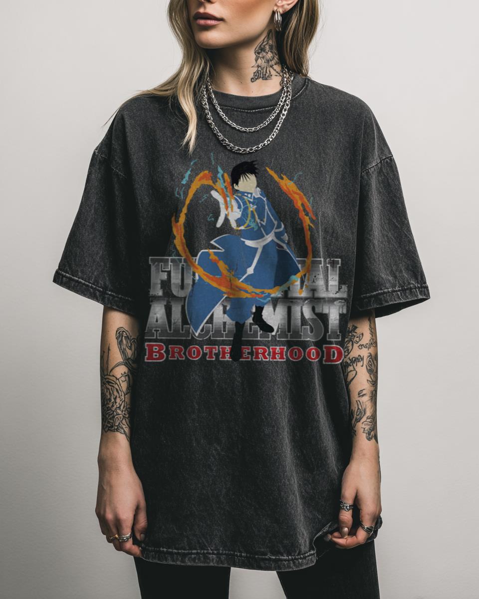 Are you a connoisseur of classic 90s anime and epic tales of alchemy? Journey into the world of “Fullmetal Alchemist” with this vintage-inspired graphic tee, celebrating the iconic 90s retro aesthetic. This design features beloved characters like Edward and Alphonse Elric, Roy Mustang, Riza Hawkeye, and Winry Rockbell, all rendered in a nostalgic anime style….
