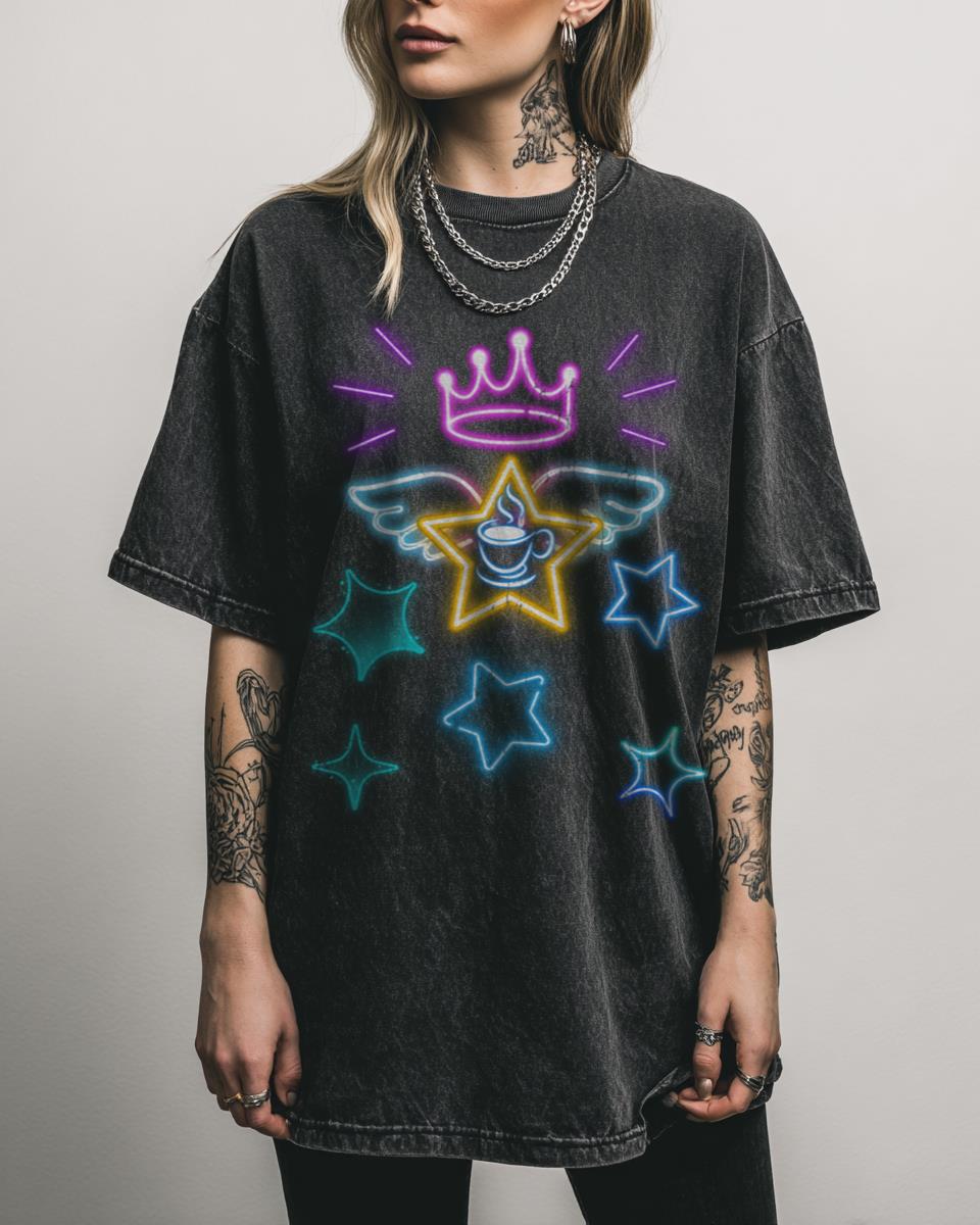 Add a pop of vibrant energy to your wardrobe with this eye-catching Neon Stars design? This dynamic T-shirt features a dazzling pattern of neon stars in bright blue, pink, and yellow hues. It’s a modern and energetic graphic, perfect for anyone who loves bold colors and abstract celestial aesthetics. Why You’ll Love This: Brighten your…