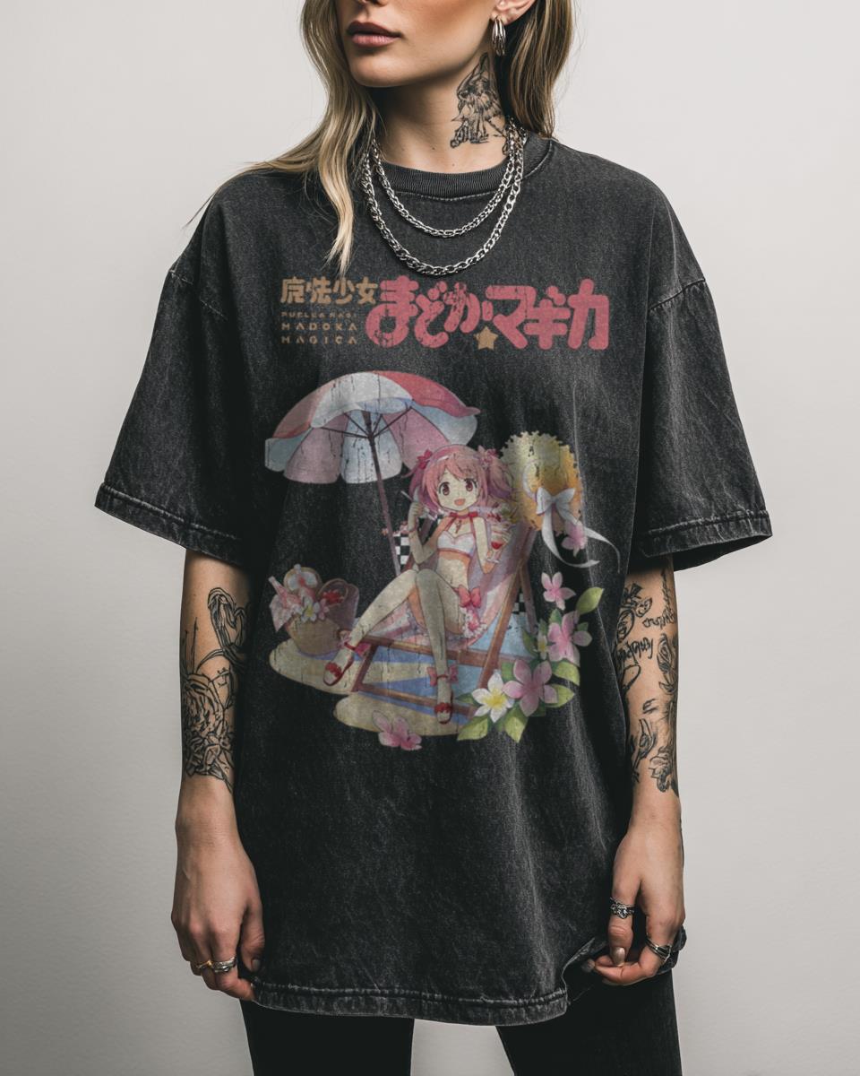 Are you drawn to the compelling and beautiful world of magical girls? Step into the critically acclaimed universe of ‘Puella Magi Madoka Magica’ with this stunning Black Acidwash T-shirt! This design captures the beautiful and complex essence of the anime, celebrating its unique take on the magical girl genre. It’s a perfect piece for fans…
