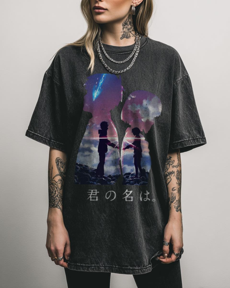 Have you been touched by the magical connection of “Your Name”? Carry a piece of the celestial romance with this Kimi No Na Wa (Your Name) Anime T-shirt. Featuring elements from the critically acclaimed Japanese animated film, this design is perfect for fans of Mitsuha Miyamizu and Taki Tachibana’s unforgettable story of fate and connection….