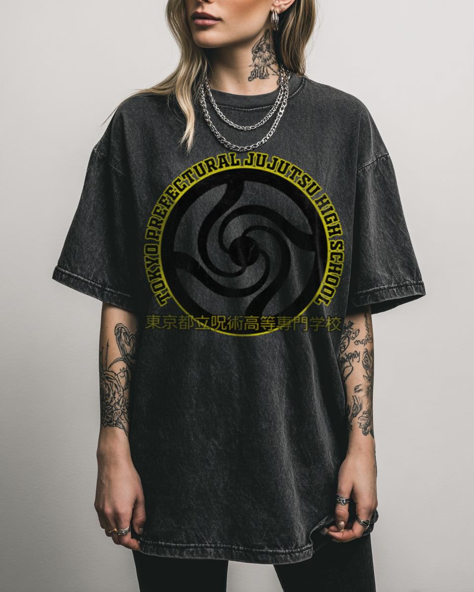 Are you ready to enroll in the world of Jujutsu Sorcerers? Show your pride for the elite institution where curses are fought and sorcerers are trained with this “Tokyo Prefectural Jujutsu High School” design. This graphic is a direct homage to the iconic school from the hit anime and manga series Jujutsu Kaisen, featuring elements…