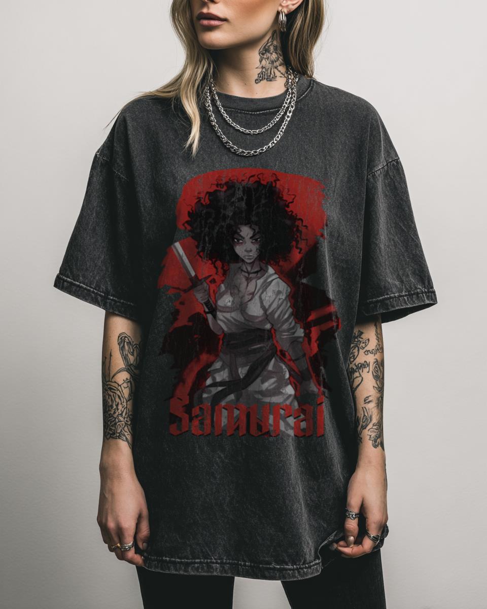 A: This shirt features a modern aesthetic graphic style, popular in Japanese fashion and anime-inspired trends, combining coolness with kawaii elements.