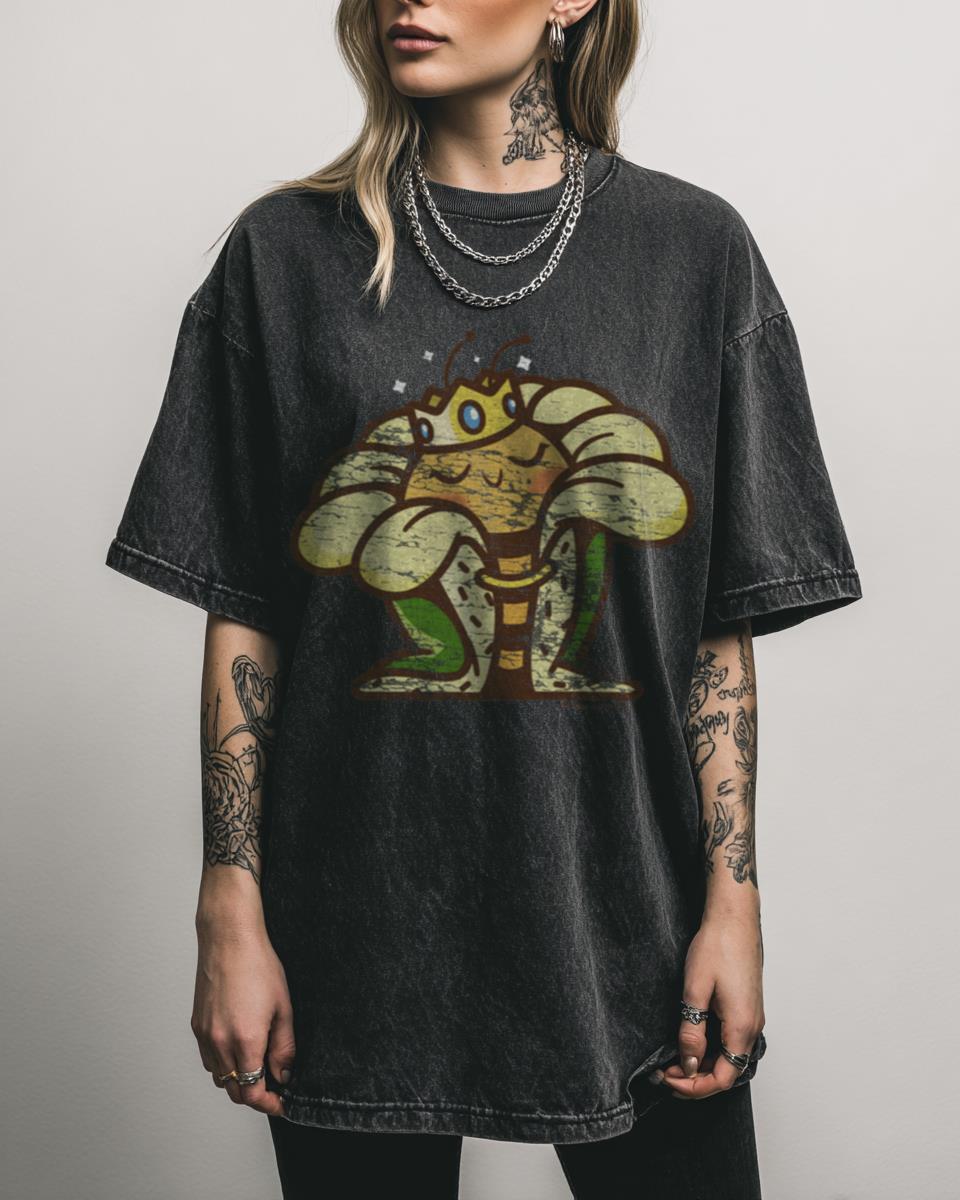 This tee offers a regular unisex fit. Please consult the sizing chart to find your ideal size. To preserve the graphic and unique acidwash, machine wash cold inside-out with similar colors, and tumble dry low.