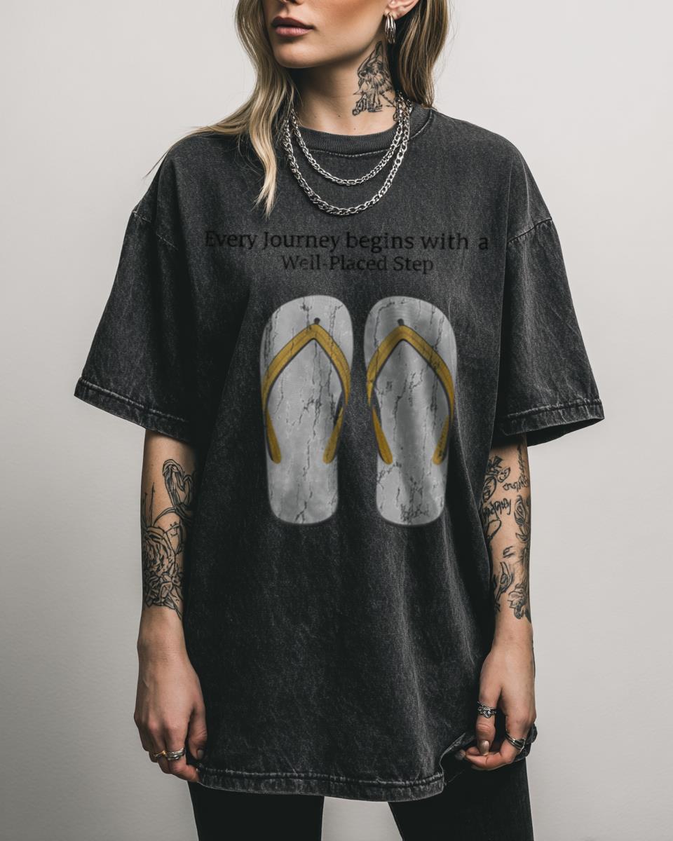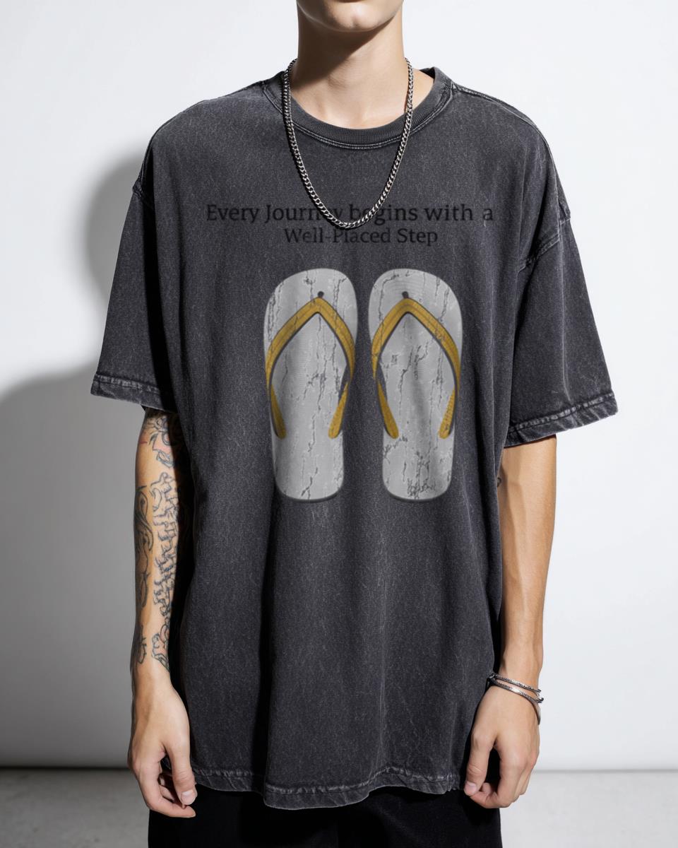 Embrace the easygoing spirit of summer with this minimalist flip-flops graphic t-shirt. This simple yet stylish design is all about leisure, vacation, and walking your own path. Crafted from soft 100% cotton on a unique acidwash base, it’s the ultimate tee for beach trips, poolside lounging, or any casual summer occasion.