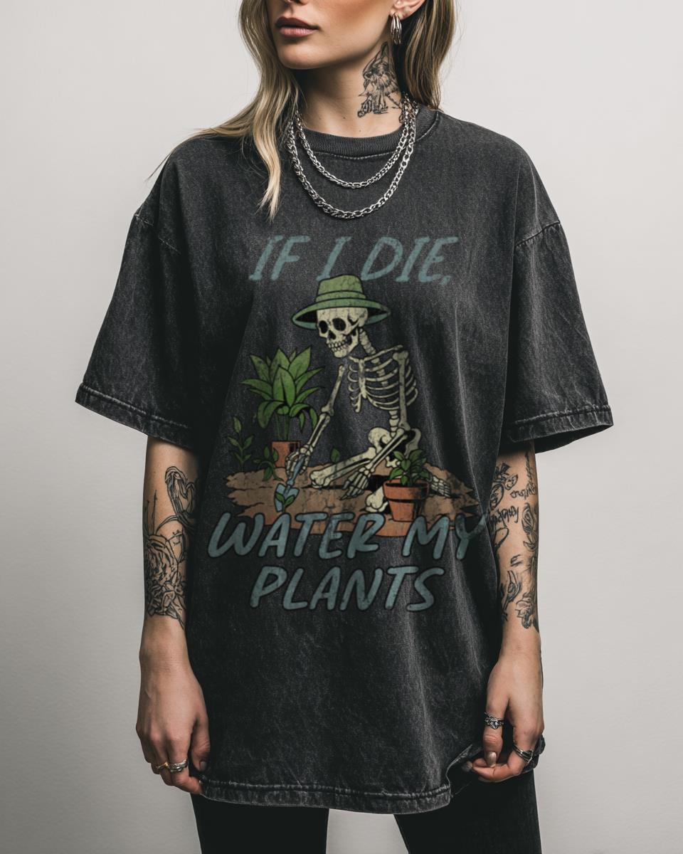 Funny 'If I Die Water My Plants' T-Shirt | Retro Skull Tee