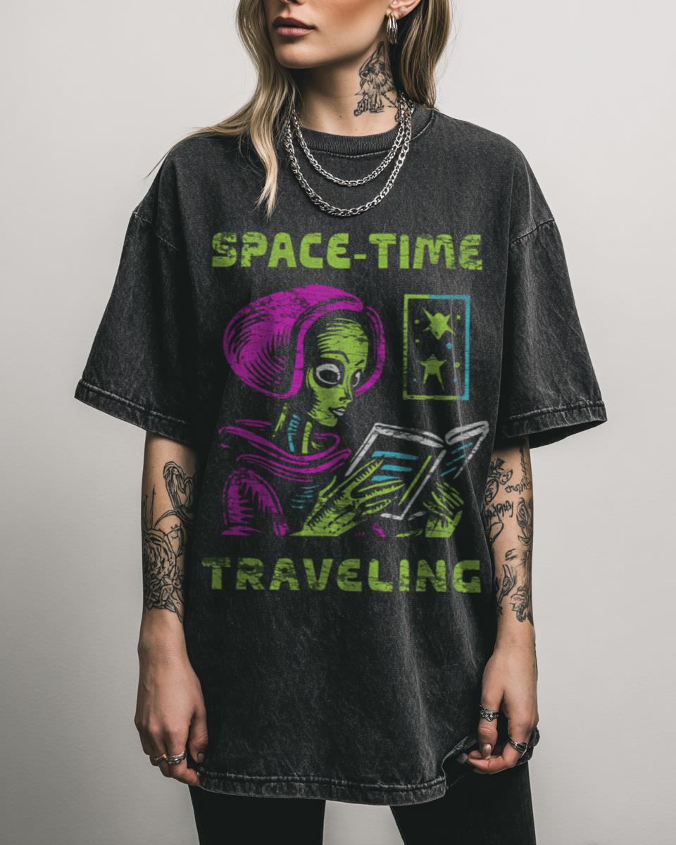 - Stylish Black Acidwash Finish: The black acidwash provides a cool, vintage look, enhancing the retro and timeless design.