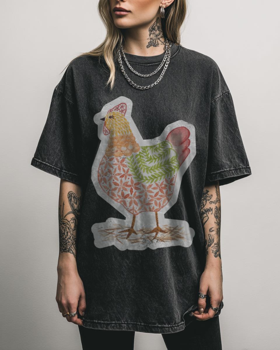 Add a touch of country charm to your wardrobe with our ‘Beatrice the Hen’ t-shirt. This beautiful tee features a colorful watercolour design of a friendly chicken, perfect for anyone who loves the farmhouse aesthetic, farm animals, or has their own backyard flock. The design has a lovely, soft, embroidery-like pattern.