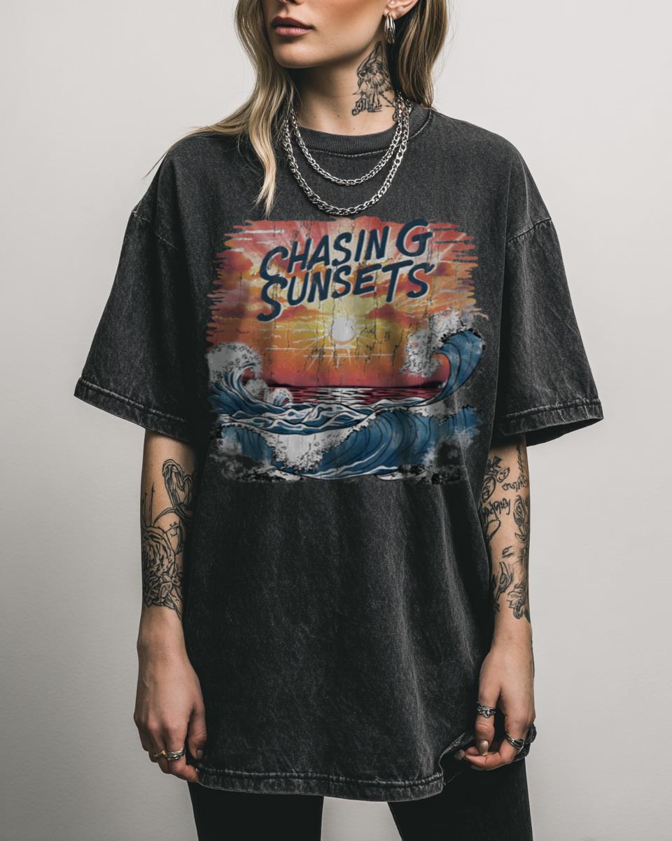 Do you live for those magical moments when the sun dips below the horizon? This “Chasing Sunsets” design captures the nostalgic beauty of a perfect beach evening with its distressed, retro aesthetic and vibrant colors. The circular graphic evokes a timeless, urban-chic vibe, perfect for those who love vintage style and serene landscapes. Why You’ll…