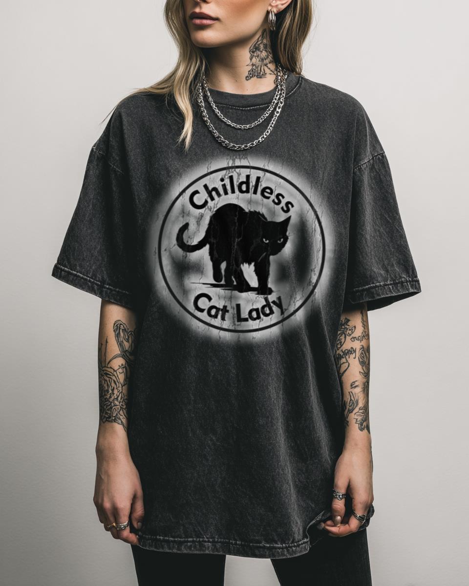 Are you a proud childless cat lady, or know someone who embraces this joyful lifestyle? This humorous “Childless Cat Lady” design celebrates the independent woman who finds fulfillment in her feline companions. Adorned with subtle floral elements, it’s a witty and charming statement piece for those who choose a childfree path and love their cats…