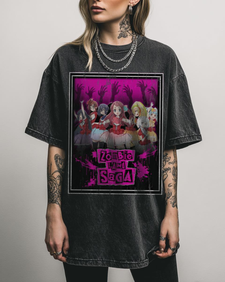 Ready to cheer for the undead idols of Franchouchou? This design celebrates Zombieland Saga, the hilarious and heartwarming anime about a group of zombie girls resurrected to become an idol group. Featuring a kawaii zombie idol, it’s a perfect piece for fans of unique anime comedies and J-Pop culture. Why You’ll Love This Zombieland Saga…